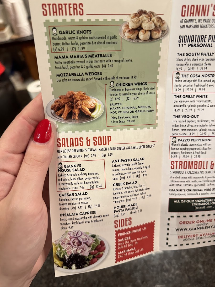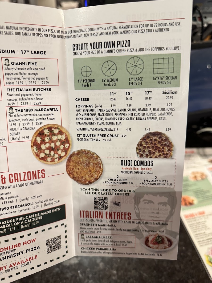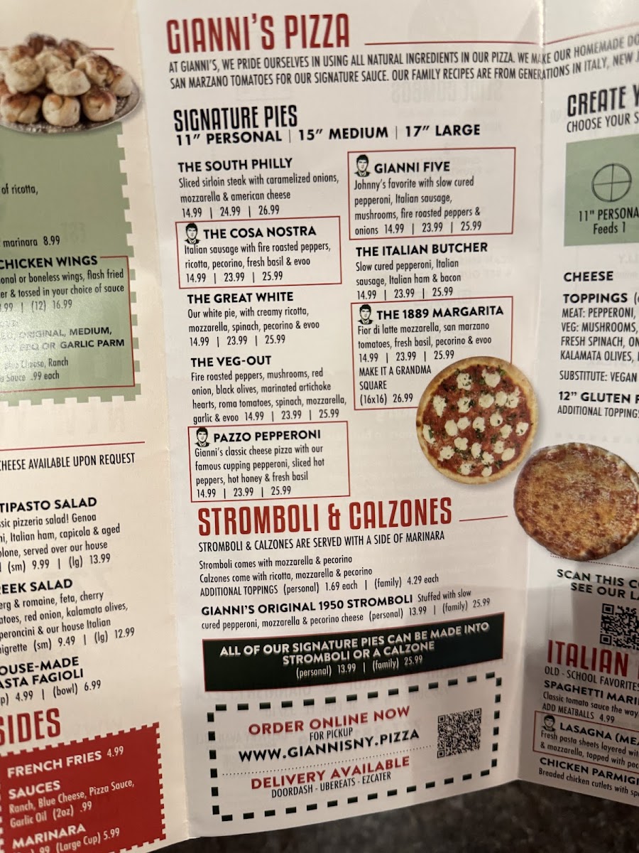 - GIANNI FIVE: Loaded with slow cured pepperoni, Italian sausage, and fire-roasted veggies.
