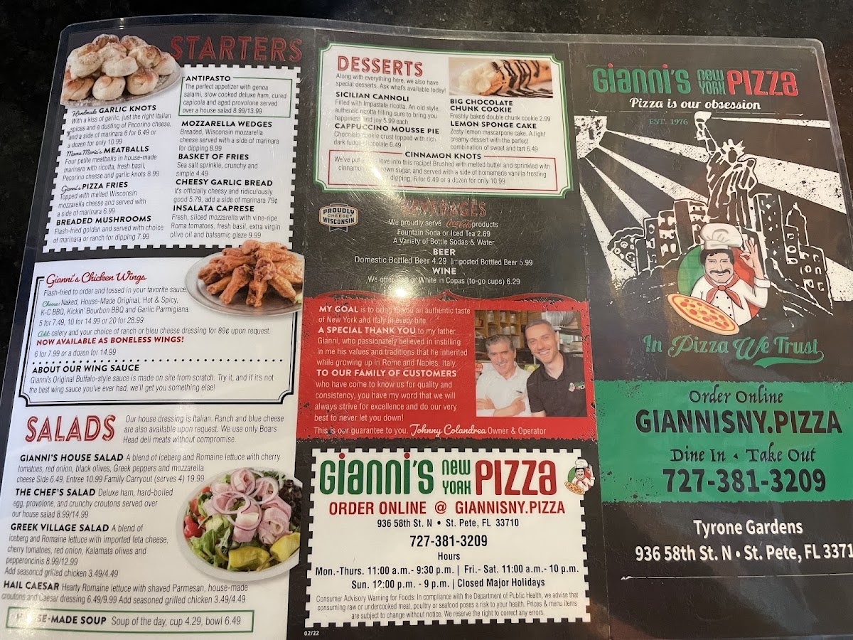 Welcome to Gianni's NY Pizza, a beloved culinary gem located at 936 58th St N, St. Petersburg, FL. Established in 1976, this pizzeria is renowned for its authentic New York style pies.
